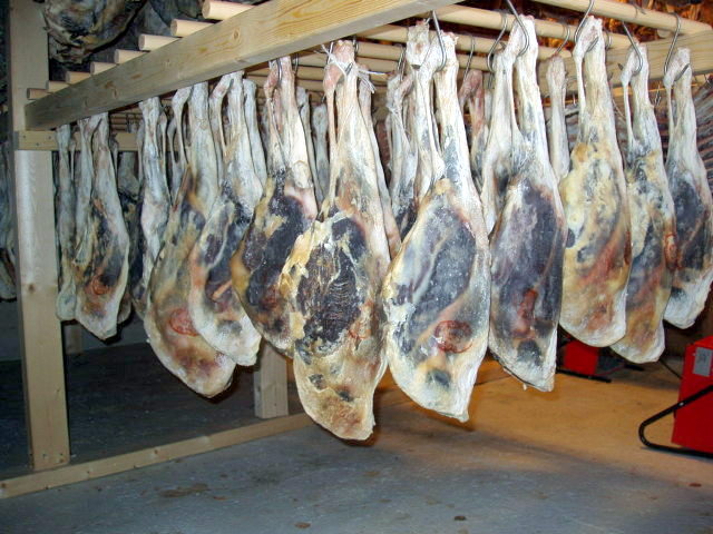 at den skal tørke betre. Dette vert så hengt til tørking om lag 6 veker