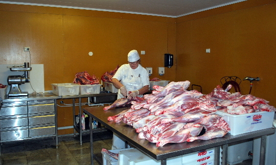 kjøt frå bogane og litt spekk frå svin for at pølsene skal få rette